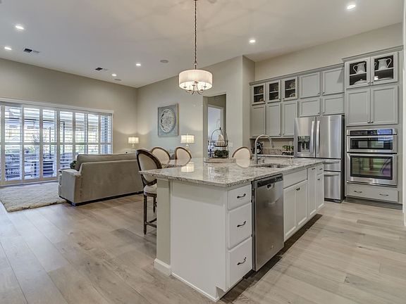 Quick before it is gone! This less than 1-year-old home has over $ 110,000 worth of upgrades including granite countertops, wood flooring, wine chiller, lighted upper glass cabinets in kitchen, luxurious master bath, fireplace and plantation shutters throughout the home. From the moment you enter the home you will be impressed by the 12 ft ceilings and open floor plan that is great for entertaining, also each bedroom is an en-suite. Enjoy summer evenings in the beautiful landscaped backyard with lighting.