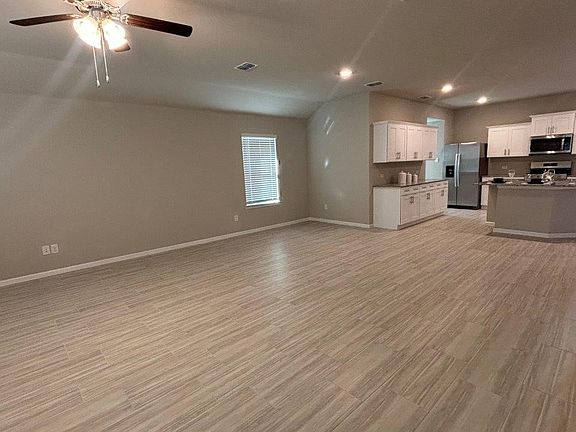 Built-in microwaveStainless steel appliancesBack patioGranite countertopsSeating islandSplit bedroom arrangementLarge primary bedroom