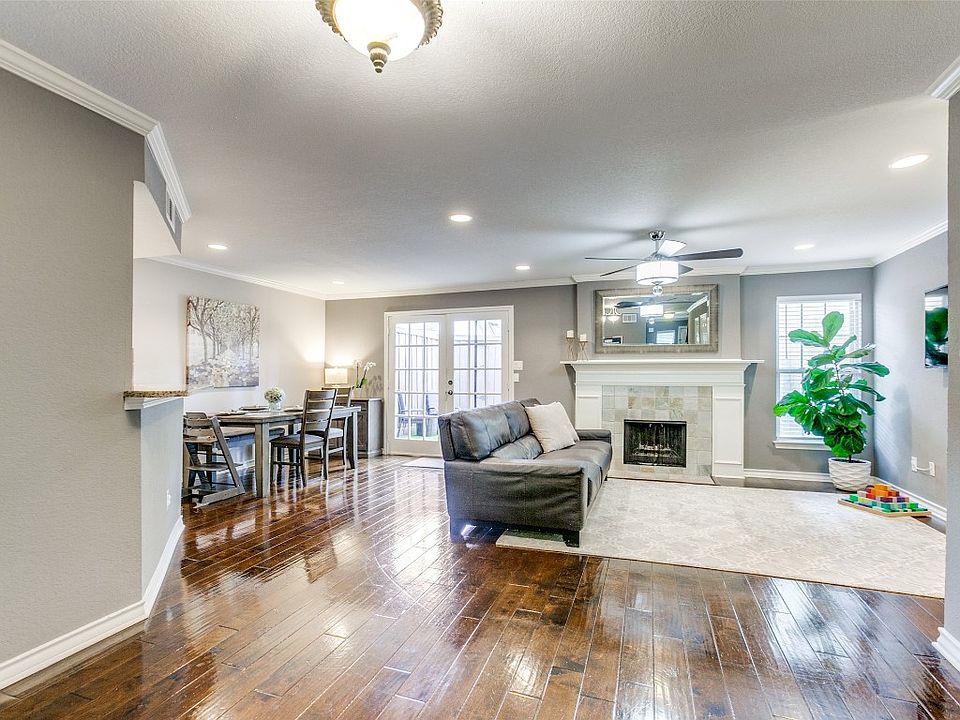 Bring the family and move right in to this beautiful updated three bedroom, 2.5 bath townhome. Lots of updates. New roof with warranty in 2023, New ac upstairs in 2021, new ac downstairs in 2022, new dishwasher in 2023, Backyard turf in 2019. all the other appliances in 2018. Kitchen features stainless steel appliances, glass front cabinetry, granite counter tops, tumbled marble back splash and is open to spacious living area with wood burning fireplace and French doors that open to large flagstone patio. Tons of storage, spacious bedrooms, wood floors downstairs, crown molding, updated paint make this home move in ready. Great backyard and patio to relax and enjoy your favorite beverage. Nice community pool is also a part of the HOA and is a short walk down the street. This will not last long.