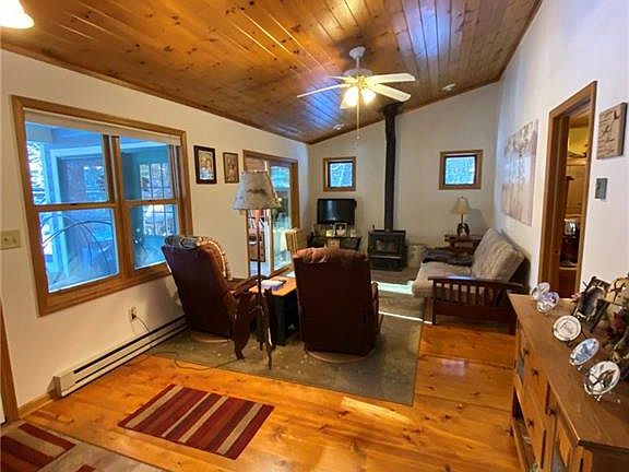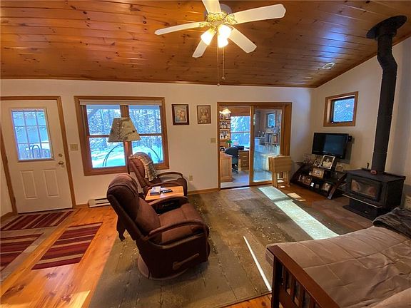 Cozy Northwoods home with 116 ft of deeded access on Hay Creek which joins the Chippewa Flowage . This home is nestled in on a 1.5 acre wooded lot with privacy all around. Enjoy all the benefits of being near "The Flowage". This is a very well maintained 2BR, 1BA home. View the pine trees in the Office/4 season room or enjoy coffee on the outdoor covered porch. 3 car garage is 28x38 and single stall is finished & insulated with 50 amp service work bench area. RV parking pad with 30 amp service.