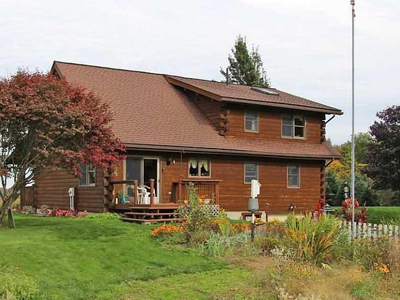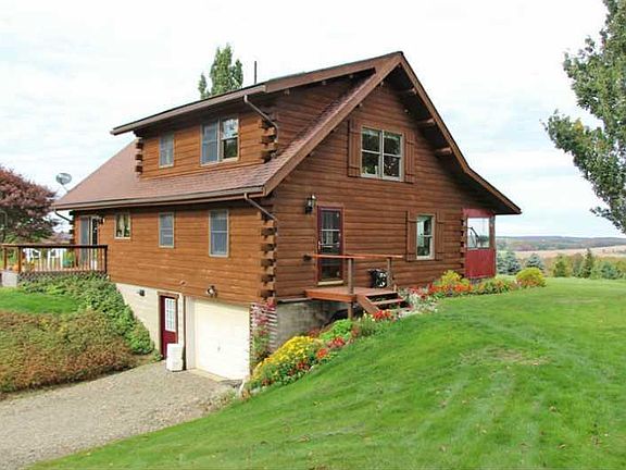 Beautiful Log Home Constructed Of Solid Cherry Kitchen Cabinets, Oak Floors On Main Level And Pine Floor On Second Level In Loft. Sits On 63.86 Acres With A 2 Car Over Sized Detached Garage With Lean-To And Heated Green House. Gas Well On Property With Free Gas To Home and Green House. Some Remaining Timber. Living Room Has A Fireplace Ready To Be Installed, Chimney Pad Inplace. Beautiful Breath Taking View Of The Valley. A Small Evergreen Farm included.