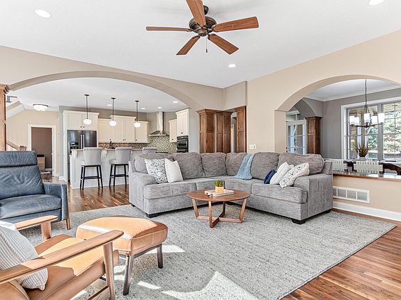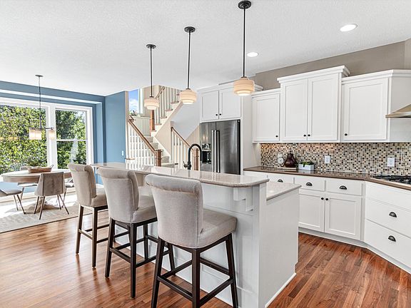 This stunning Manley-built modern craftsman home offers timeless design and unmatched functionality in a private cul-de-sac setting with only two other homes. Private back yard is complete with a paver patio, beautifully curated landscaping, and south-facing maintenance-free deck for relaxing or entertaining. Inside, you'll love the refinished walnut hardwood floors on the main level, complemented by fresh paint and new carpet throughout the main and upper levels. The main level features a cozy gas fireplace, a home office, and a mudroom with cubbies. The kitchen and dining area flow seamlessly to the deck, making indoor-outdoor living a breeze. The upper level features four spacious bedrooms, including a primary suite with vaulted ceiling and a private full bath and walk-in closet. You will love the convenience of the updated upper-level laundry room. The walkout lower level is fully finished with a living area, wet bar, additional bedroom, and bathroom—perfect for guests or entertaining! Additional highlights include a heated garage for those chilly Minnesota winters and gorgeous professional landscaping surrounding the home. Take advantage of the walking paths on Ipava, connecting you to miles of trails, schools, and Lifetime Fitness—all nearby!