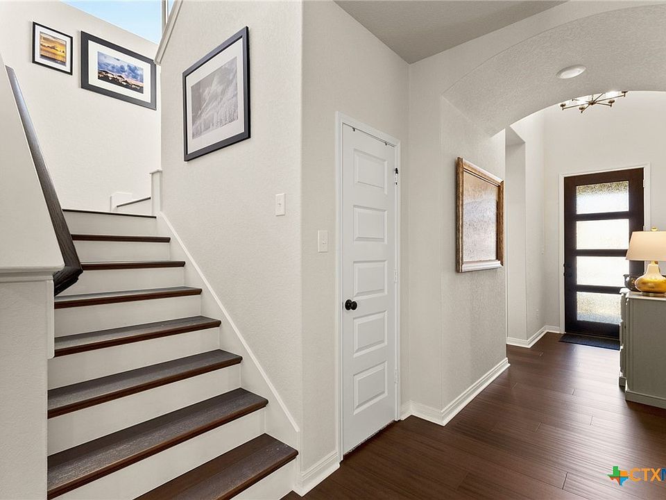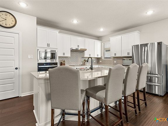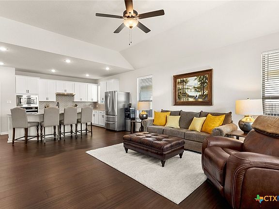 Welcome to this custom crafted Coventry built home located at 947 Blue Violet that shows better than a model home. This spacious residence offers 2,659 square feet of thoughtfully designed living space, featuring four bedrooms and three full bathrooms. The first floor boasts bamboo wood floors that add a luxurious feel starting from the minute you enter the home and into the master bedroom. The open-concept design seamlessly blends the modern island kitchen with living and dining areas, making it perfect for entertaining or everyday living. The living room has custom motorized Euro French pleated drapes along the back windows that provide ample privacy and comfort. Along with the master bedroom being downstairs, there is an additional bedroom with access to a full bathroom that can be used as a second master bedroom or an office. Upstairs, you'll find an expansive loft, along with two additional generously sized bedrooms, offering flexibility for guest accommodations, home offices, or hobbies. The extra large, fully fenced and irrigated backyard provides a private outdoor oasis, ideal for relaxation, play, entertaining and no neighbors behind the home. If you are needing additional storage, check out the new Tuff Shed that was recently added. With its charming curb appeal and well-appointed interior, this home invites you to enjoy comfort, style, and convenience all in one place. The neighborhood is full of amenities including a community pool and only minutes to IH 35 and all types of shopping. Come take a look at this beauty. You will not be disappointed!