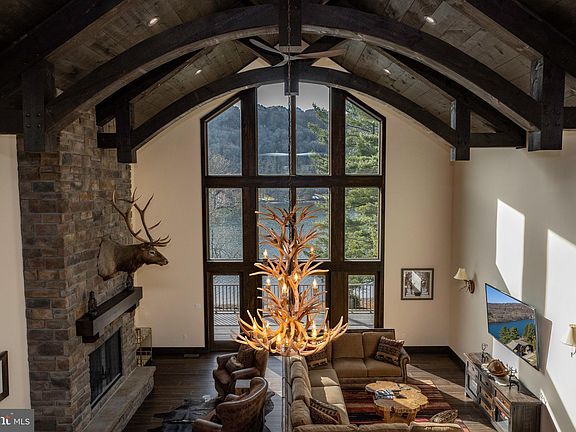 This stunning lakefront lodge represents the best-of-the-best in Deep Creek Lake design, building and location. The setting features open lake views with a grassy lakefront yard perfect for all ages, a gentle slope from the house down to the lake, and a private Type A boat dock with deep water. When entering this 2019 built home you are greeted by high ceilings, exposed rustic beams, a large stone fireplace, an antler chandelier, and a wall of large windows overlooking the lake. The perfectly arranged open floor plan boasts over 7,000 finished square feet and includes a state-of-the-art gourmet kitchen with Jenn-Air stainless appliances, copper hood, and an extra-large granite island that is perfect for entertaining family and friends. Three of the bedrooms have en-suite private baths; the main level primary suite has an oversized tiled shower, double vanity, and a copper soaking tub with lake views. The upper level features a large loft overlooking the living room, three more bedrooms - two of the bedrooms overlooking the lake and one with its own private bath. On the lower-level experience, the massive recreation room with pool table, wet bar, gym space/additional bedroom, another full bath, and office room. From the lower level walk down to the lakeside outdoor fire pit and or get in the hot tub to complete your perfect day on the lake or ski slopes. The house also has a 2-car attached garage and a separate 2-car detached garage at the top of the property with storage underneath. The property value is further enhanced by Town Center zoning. Sold furnished and within close proximity to Wisp ski resort – only minutes to the ski lodge. Don't miss the opportunity to purchase this luxurious Deep Creek Lake and Wisp vacation home!
