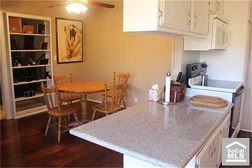 HAFA APPROVED AT $222,500.-Bring your buyers now--RARE FIND**Split-level upgraded Woodridge townhouse with open floor plan and lots of light. Two large bedrooms. Spacious living room with fireplace. Private patio off of kitchen/dining area. Granite countertops in kitchen. All appliances including stackable washer/dryer come with the home. Master suite has built-in vanity or desk area, lots of closet space, and view of the hills. Remodeled bathrooms have ceramic tiled floors. Movie theatre, restaurants, fitness center, and shops within walking distance. This is a must see. Some cosmetic TLC needed.