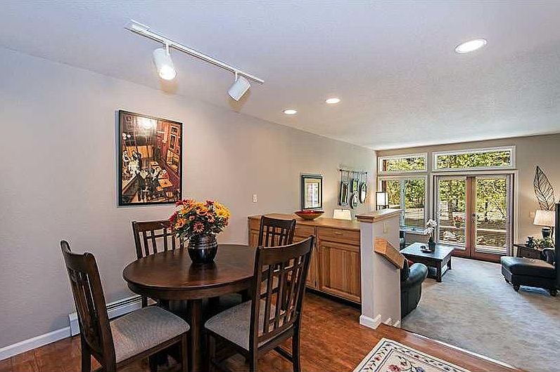 Nicely upgraded and furnished two bedroom lower unit. Hardwood flooring and newer appliances. West facing deck that overlooks greenbelt area for added privacy. Close proximity to garage and spa/sauna. A must see!