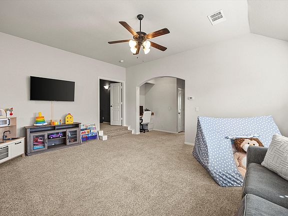 Experience the best of contemporary living in this stunning 4-bedroom, 3-bathroom home. With an impressive 3-car garage & an array of luxurious upgrades, this property offers an unparalleled blend of style & functionality. Step inside to discover an open floor plan that flows effortlessly, designed for both everyday living & entertaining. The spacious kitchen, complete with high-end countertops, stainless steel appliances, & a large center island, serves as the heart of the home. The adjoining dining area & expansive family room with a cozy fireplace create welcoming spaces for gathering & relaxation. Rich flooring & high ceilings enhance the living areas, giving the home a sophisticated touch. Stunning dining room is perfect for hosting family events. Each of the four bedrooms is generously sized, offering comfort & privacy. The primary suite serves as a serene retreat, featuring an en-suite bathroom with dual sinks, a soaking tub, a separate shower, & a large walk-in closet. The additional bathrooms boast updated fixtures & finishes, ensuring a modern & polished feel through. Beautiful home office is perfect for working from home. Expansive 2nd living area can double for game room-play room & includes home work station - 2nd office. Host movie night in your very own theater room. The exterior of the home presents a beautifully crafted stone & brick facade, blending seamlessly with the picturesque surroundings. The meticulously landscaped front yard adds to the home's curb appeal, while the spacious backyard offers endless possibilities for outdoor enjoyment & entertainment. Built with attention to detail, this property includes energy-efficient features & state-of-the-art amenities that cater to a luxurious lifestyle. Situated in a friendly neighborhood, with convenient access to local amenities & excellent schools, this home is an exceptional opportunity for those seeking both comfort & style. Don’t miss your chance to experience this remarkable home in person.