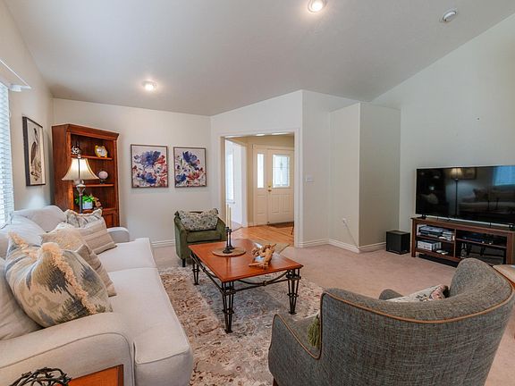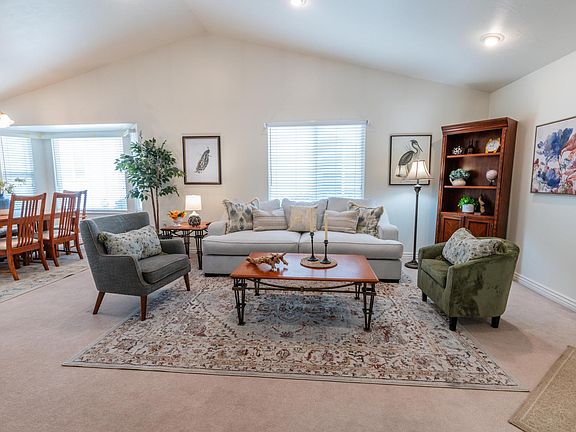 Tucked away in the highly desired Summerfield PUD, this well-maintained twin home offers the ease of main-level living in a prime location. Enjoy a bright, vaulted great room that opens seamlessly to the kitchen-perfect for entertaining inside or on the back patio. A front living room/office adds flexibility, along with two bedrooms and laundry room on the main, all just away from the garage (with built-in storage cabinets). The fully finished basement expands your space with an additional family room and kitchenette, two spacious bedrooms, an office (complete with built-in shelves, desk, credenza & chair), a generous 3/4 bath and storage room. This home offers all the benefits of a 55+ community-without the age restriction. The location is hard to beat: walking distance to schools, shopping, restaurants, and Timpanogos Hospital (just across the street), and only two minutes to I-15. Measurements take from County records; buyer advised to verify.