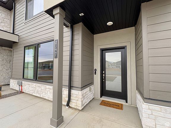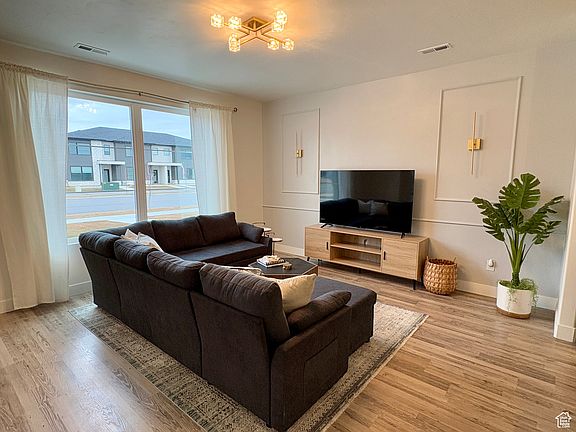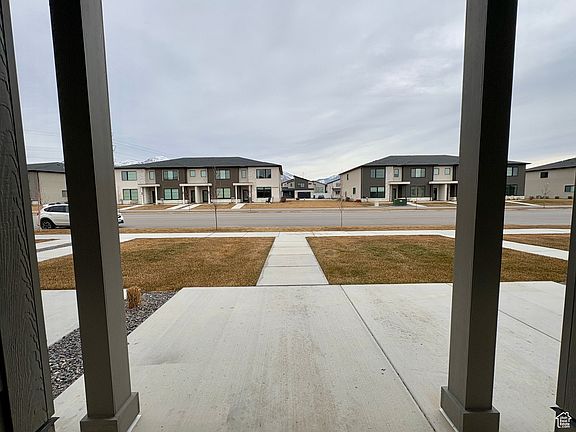 Beautiful two-story townhome located in the new Lakeshore Landing master-planned community. Conveniently located just 5 minutes from I-15. This unit features numerous upgraded finishes, including cabinets, gold hardware with pristine white countertops in kitchen, tiled floors in all bathrooms & laundry area, upgraded LVP wood finish flooring throughout the main level. Open-concept floorplan with 9-foot ceilings on the main floor, large windows that offer natural light, an oversized kitchen island, a spacious walk-in pantry, and a bright living room. Upstairs offers a large loft and 3 bedrooms. HOA includes a community pool, pickleball, playground, and open green space. The HOA covers snow removal, lawn care, and roof ownership. Square footage figures are provided as a courtesy estimate only and were obtained from county records . Buyer is advised to obtain an independent measurement.