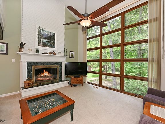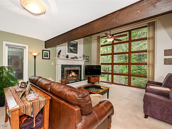 Location, location, location...This beautifully updated Townhouse backs to a wonderful wooded area with an amazing waterfall nearby. Access to the Cuyahoga Valley National Park is a few units away. The home features 3 large bedrooms on the second floor. 2 full Baths and half bath have been professionally remodeled. The walkout Lower Level offers a 4th Bedroom/Office and a 3rd full Bath. This is one of only 2 units in this association with a Sun Porch addition - this one 4-season. 2-story Family Room has a wall of windows and soaring brick fireplace. 1st floor Utility has full-size washer and dryer that stay. 1st floor Study/Den has custom built-in bookshelves. The sharp Kitchen features granite counters with glass tile backsplash and wood laminate flooring. Wet bar in Family Room has granite as well. Replacement Pella sliding windows in Sun Room. New furnace & central air in 2015! Primary Bedroom is vaulted with access to roof deck. En-suite Bath equipped with double sinks, quartz counters and generous walk-in shower. On the Lower Level you will find a multi-use Hobby Room. The 30 ft Rec Room accesses a private covered Patio. At the front, a walled Courtyard with custom concrete patio offers privacy and additional outdoor space. This is a great home for the nature enthusiast or just someone looking for peace & quiet. Enjoy all the amenities GV has to offer: Clubhouse, indoor & outdoor pools, fishing lake, tennis courts, playground, walking trails... Hike & Bike Trail nearby. Sagamore Hills has no RITA tax and is one of the safest areas in Ohio. Truly a special place! NOTE: Don't miss the Virtual Tour
