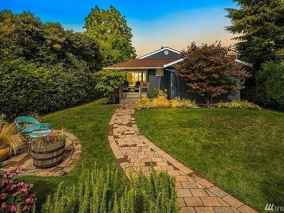 Welcome home to this pristine bungalow, just blocks to downtown Edmonds, the Kingston Ferry, and Yost Park. Entering through the covered front porch, you'll find a bright and light-filled home with views of the Sound and mountains and fabulous sunsets. The seller has made many updates, including new electrical, a remodeled full bath with custom tile work, and school house lighting throughout. Downstairs bonus room would make a wonderful home office/rec room/media room or possible 3rd bedroom.