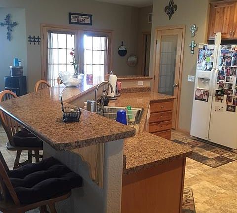 Beautiful custom built home on 40 acres. Convenient main level living with the bonus of a huge family room, game room, office area upstairs. Rustic Birch Cabinetry throughout the home. Solid knotty pine doors and trim. There is tons of storage above the garage with easy access. There is also a grain bin on the property with a concrete floor for additional storage. The outdoor living of this home is enhanced by a 12' coved patio across the rear of home and 8' wraparound covered concrete patio around the rest of the home. The entire 40 acres is fenced. The architectural shingled roof is less than 1 year old.