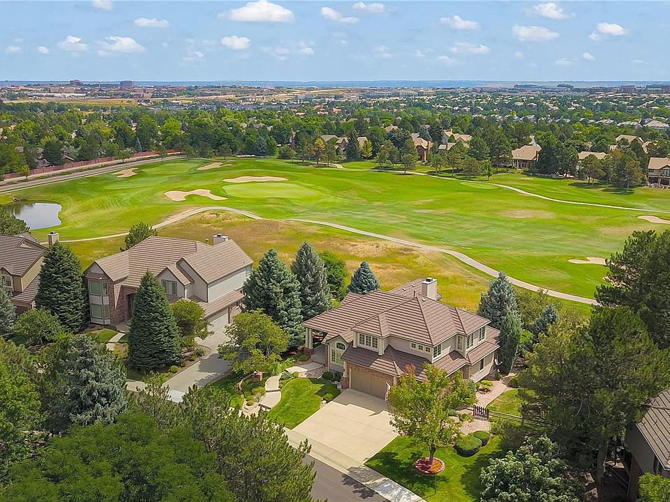 Discover refined golf course living in this beautifully designed residence perfectly positioned along the lush fairways of Lone Tree Golf Club, near holes 2, 3 & 4. Offering nearly 5,300 square feet of finished space across three thoughtfully crafted levels, this home blends timeless elegance with functional comfort. The main floor impresses with a dramatic two-story living room, brick fireplace, custom built-ins, and expansive windows that flood the space with natural light. A chef's kitchen anchors the heart of the home with granite countertops, an island, stainless steel appliances, and double ovens ideal for both everyday meals and grand-scale entertaining. Main floor hosts the luxurious primary suite provides a tranquil escape, complete with an office located next door with a cozy fireplace. Three additional bedrooms and full bathroom are located upstairs. In the basement, an additional bedroom, full bathroom, and sitting area provide privacy for family or guests. The walk-out basement expands the living space with a spacious recreation room, built-in bar, and a bonus finished room perfect for storage, or arts & crafts workspace. Another room downstairs that could be used as an additional bedroom or office space. Step outside to enjoy a beautifully landscaped backyard and a covered lower patio with upper deck designed for relaxation and entertaining, featuring an electric shade, and incredible panoramic golf course views. This home offers refined finishes throughout, this exceptional home delivers luxury, lifestyle, and scenic beauty in one of Lone Tree's most coveted neighborhoods.
