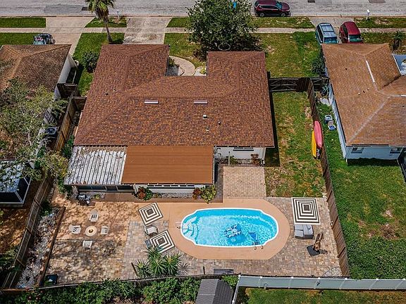 One or more photo(s) has been virtually staged. Your poolside paradise in Seminole Grove Estates awaits you! Looking to grow your investment short-term rental portfolio or make this your home? The opportunity is yours to have. Enter this stylishly updated four-bedroom, two-bath, two-car garage pool home with an oversized, fully fenced backyard and double gate access—bring your boat or RV. Best part? No HOA and NOT IN A FLOOD ZONE. Major upgrades completed: newer roof (2022) with a transferrable warranty, newer HVAC (2021) and updated windows. Inside, you’ll love the bright open layout, luxury vinyl plank floors and modern fixtures. The designer kitchen is a showstopper—shaker cabinets, granite counters, subway tile backsplash, stainless steel appliances and an island with bar seating. A spacious Great room/Florida room to entertain, relax or host game night in style. Your primary suite is on its own side of the house and proves to be a private retreat with walk-in closet and a sleek en suite bath featuring a glass-enclosed shower. Three additional bedrooms all carpeted, offering flexibility, privacy for family, guests or a chic home office. Your second bath offers a shower/tub combination. Go outside to your ultimate backyard escape—a screened lanai, sparkling in-ground pool, plus a spacious patio perfect for barbecues, firepits and endless outdoor fun. Washer and dryer hookups are in the garage. This home checks every box such as stylish updates, functional space and a backyard built for Florida living. All just minutes from schools, gorgeous beaches, and Seminole City Center shopping and dining as well as the Pinellas Trail. Welcome Home. Unincorporated Seminole allows STR allowing AirBNB.