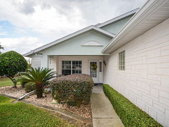 Golf Course home with sweeping views and additional distance from side neighbors! This spacious expanded Jefferson model home is located in the much sought after gated 55+ golf community of On Top of the World. Home features 3 bedrooms, 2 baths, 2.5-car garage, newer HVAC (2012), vaulted ceilings throughout, split bedroom floor plan, 2 skylights, Sunroom, screened Lanai, remote roll-down hurricane shutters at back of home, pull-down stairs to access attic storage, extended width garage, electric fireplace, inside Laundry, and more! Lawn care, basic cable, gym, exercise classes, 24-hour guarded gate, exterior painting, and more are included in your monthly HOA fee. Enter the foyer to view vaulted ceilings throughout the home. .......