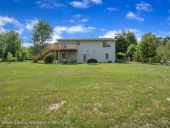 Welcome Home! Enjoy this beautiful setting with 3 acres of abundant nature! This freshly painted home will make a great gathering place, both in the open floorplan on the main floor and the spacious family room downstairs with a cozy pellet stove and walk out. Move out to the deck and backyard for campfires and nature viewing. There is an office downstairs for those needing a work area. A 40 x 24 barn being used for garage space can store so much more. Schedule your showing today!