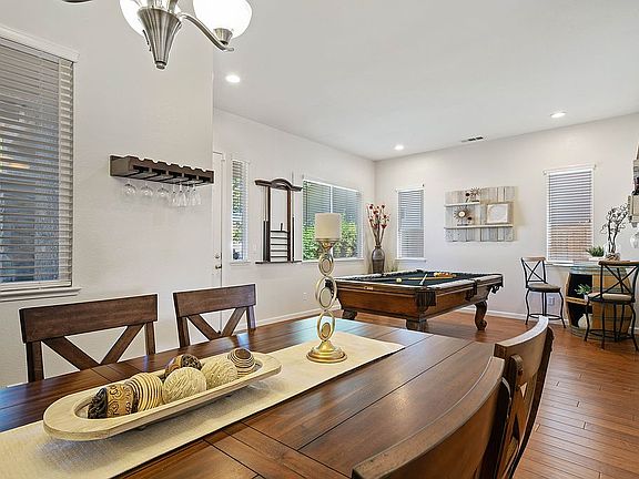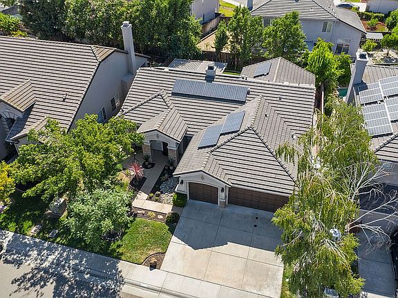 Meticulously maintained SOLAR OWNED ONE STORY in a great east Elk Grove neighborhood! Fully landscaped front and back yards set the stage for enjoyable living inside and out. Home offers 10 foot ceilings, open floor plan and stylish finishes including hardwood floors in main living areas, newer carpet in bedrooms, and light, fresh interior paint. Kitchen design has dining island, granite counters, window over sink, ample storage, stainless steel appliances including double ovens and a five burner gas stove top. Master suite features adjoining room with fireplace and space for office and/or cozy TV watching. Additional home improvements include 34 panel OWNED solar system, newer dual zone AC with Nest, tankless water heater, whole house and ceiling fans, updated bathrooms and replaced recessed lighting. Backyard has a custom designed pergola, open patio space and lush foliage. Close access to freeway, shopping, transit and schools. Top rated Pleasant Grove HS & Albiani Middle!