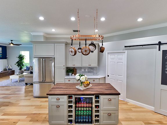 Looking to downsize but NOT sacrifice quality? Spacious pool home on the 1st hole in upscale country club community. NO builder grade finishes! No gaudy pillars, no wall mirrors, no laminate, no formica, no Home Depot brands! Solid mahogany entry doors, gorgeous hickory flooring, massive dining rm could fit a table for 20, open to kitchen w/ seating for 5 at breakfast counter. Classic wood French doors close off the den/office. Add curtains to the doors for a flex guest room in addition to your 3 BRs. Kitchen features Viking & Z-Line Professional appliances, fireclay farmhouse sink, pot filler, walnut range hood, walnut butcher block prep island (seating for 3), & wine fridge. Hand-made, solid cypress barn door covers the pantry closet. Family rm is open to kitchen with bar height island of walnut butcher block (seats 8). Split bedroom layout is ideal for privacy. Master en suite has walk-in shower, garden tub, dual sinks & private water closet, main bath also has double sinks & walk-in shower. You'll find Kichler, Miseno, Kohler & Moen from specialty suppliers, no big box brands in these bathrooms! 2 car garage has overhead golf cart door on the side, both have automatic openers. Speaking of golf carts... travel by golf cart without getting in your vehicle to get to Publix Supermarket, Dunkin Donuts, Walgreens, SunTrust Bank, nail salon, chinese food, pizza & liquor store. Life is good! Maintenance you ask? New roof 2014, new A/C 2017, new water heater & sprinkler system update 2019. Just relax & enjoy.