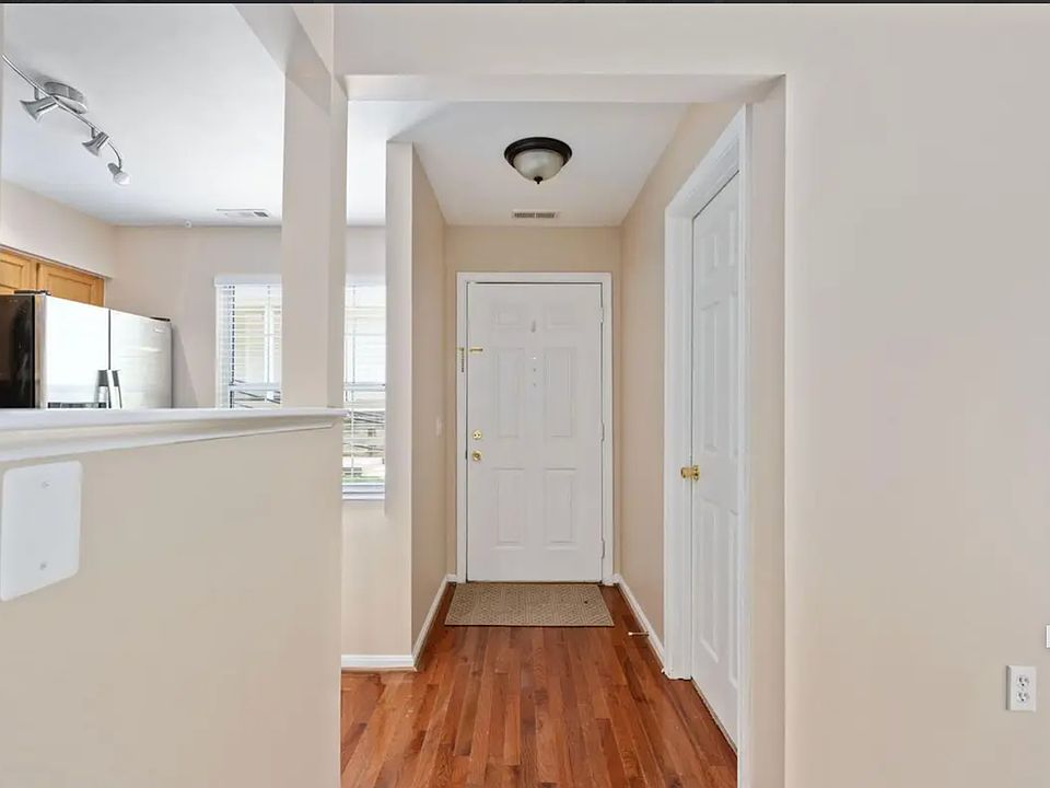 Private secure storage closetCorner unitGranite countersCeramic tile showerCeramic tile flooringHardwood flooringHardwood foyer