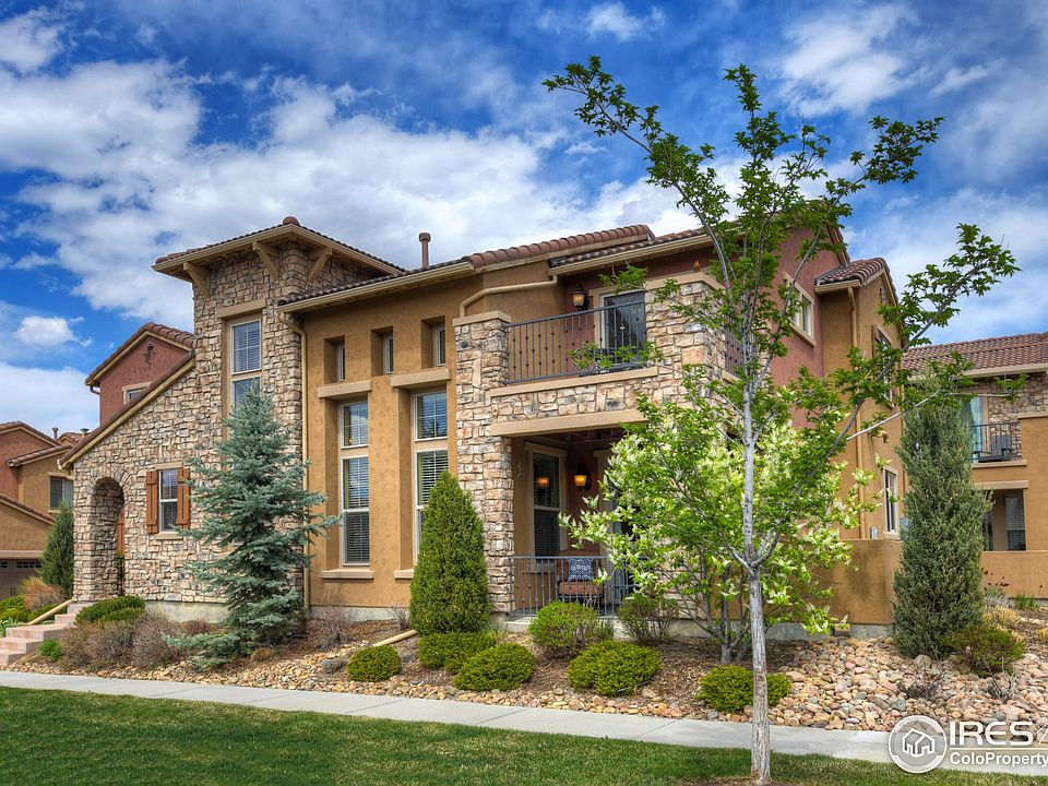 Back up offers are welcome, contact listing agent directly to schedule a showing. Enjoy resort style amenities in this charming Tresana townhome. Adjacent to miles of beautiful open space and trails in a quiet location with mountain peak and jaw-dropping sunset views, plus it is so close to the gorgeous pool and stone Piazza with outdoor fireplace. This immaculately maintained end unit, front facing townhome lives like a single family residence with windows on 4 sides, a wrap around patio next to grassy open space and 2 upper floor balconies to soak in the views. Inside, a two story living room with a wall of windows and a gas fireplace greet you. The open plan design stretches into the dining room with a sliding to door the spacious patio. Open to both the living and dining rooms is the large gourmet kitchen with maple cabinetry, ample slab granite counters, a generous island with room for bar seating and gourmet stainless appliances including a double oven and 5 burner gas cooktop. Engineered wood flooring is found throughout the main living areas. The home is also hardwired for stereo speakers both inside and out. A dramatic stairway leads to the upper level where the oversized primary bedroom offers space for a seating area and a West facing balcony. A 5 piece luxury bath with solid granite counters and a soaking tub plus a spacious walk-in closet complete the suite. A secondary bedroom and a bath with double granite vanity are down the hall but nicely separated from the primary suite. A study/loft overlooking the living room has an even larger balcony, again with those fabulous mountain views. Plenty of storage for all of your gear in the two car attached garage plus a large storage closet. Life is easy here with Whole Foods, several restaurants, Highlands Ranch Town Center and Rec Centers close by.