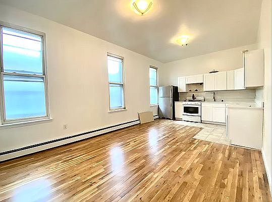Huge, recently renovated Three Bedroom Two Baths available! Apartment features 7 closets (all the closet space you could want!), a large open kitchen with plenty of cabinet and counter space and a HUGE living room with tons of natural light all day! All bedrooms fit queen sized beds plus room for furniture. Master bedroom fits a king. Heat and hot water is included in rent. Tenant pays electric, gas and internet. Pets allowed. Right across the street from the subway. Laundry is one block away. *Please note photos/video/floorplan are of the same apartment 2 flights down. Layout is the same. Line is the same. The only difference is the kitchen cabinets are a light brown (see last photo). Unit is currently being cleaned; please excuse the photo* (Updated photos coming this week).