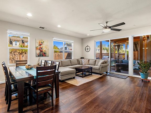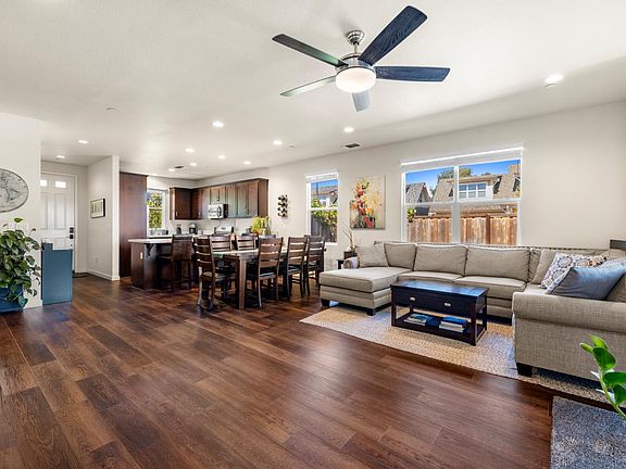 Gorgeous single level home with an Accesory Dwelling Unit and owned SOLAR! A beautiful corner-lot home built in 2018 that features a single-level 3-bedroom, 2-bathroom main home plus a wonderful detached ADU, perfect for guests, extended family, or rental income. Step inside the main house and enjoy an open-concept layout with upgraded lighting, durable vinyl plank flooring, and abundant natural light throughout. The spacious kitchen boasts Quartz countertops, stainless steel appliances, and plenty of counter and cabinet space ideal for cooking and entertaining. The outdoor space features mature fruit and citrus trees, strawberries, raised planter beds, and thriving tomato plants. Entertain under the gorgeous gazebo or enjoy movie nights outdoors with the built-in projector and concrete patio area. The detached ADU offers additional flexibility whether you use it for guests, in-laws, or as an income-generating rental unit. With its prime location, newer construction, and thoughtful upgrades, 948 Brunello Drive is truly a special property perfect as a first home, investment, or multi-generational living opportunity. This home is energy efficient with 20 OWNED solar panels and is ready for you to add an EV charger. This is one you do not want to miss