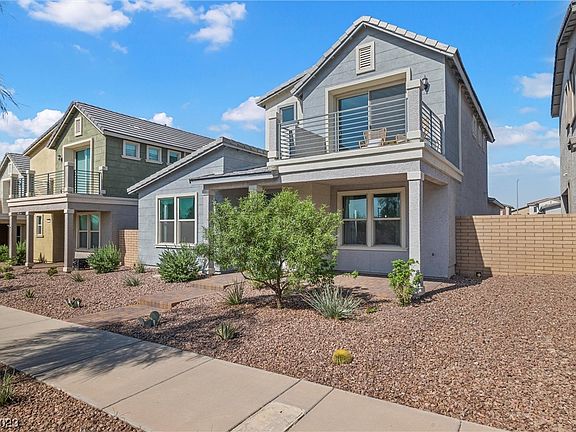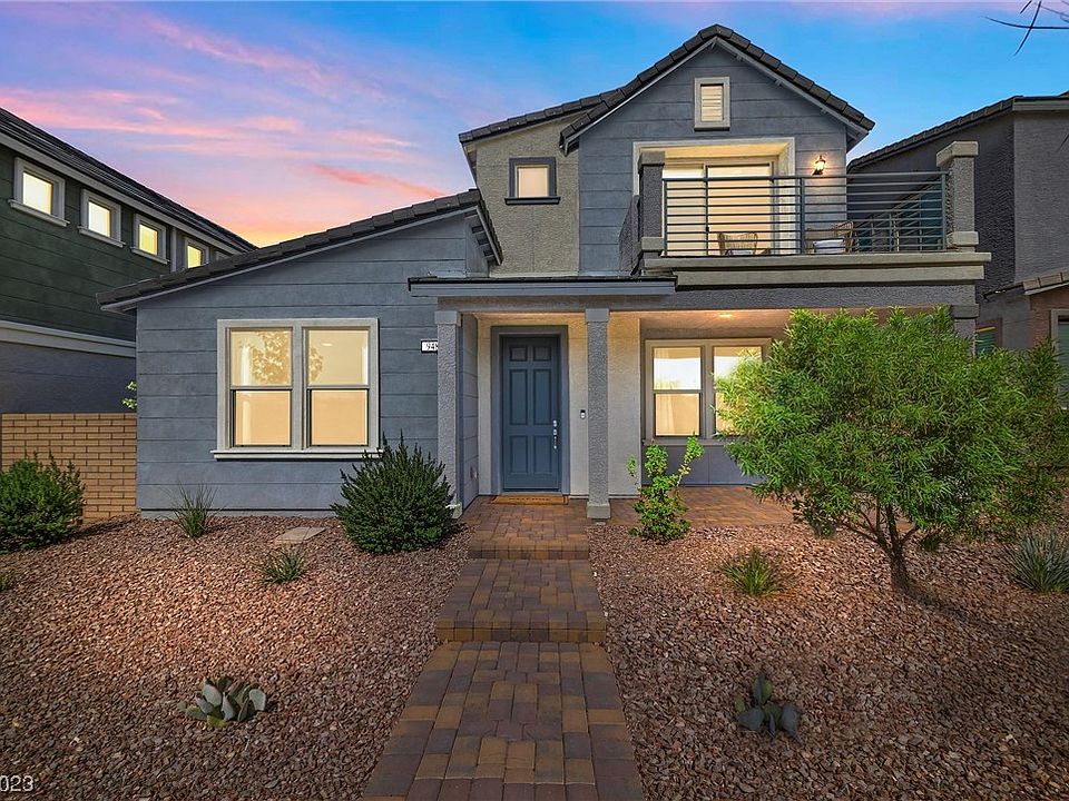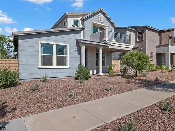 Walk right out your front door across to the Cadence Central Park, Splash Pad/Olympic Pool and amenities! 9ft Ceilings and Primary Bedroom downstairs, head upstairs to the Front Balcony for fantastic views of the community, mountains and Vegas Valley. See fireworks over the Strip on 4th of July! Professional Interior Design elements and beautifully finished yard (with lights!) highlight this 2021 built stunner! Tasteful design elements include almost $1500 in ceiling fans! Dual A/Cs boast an additional control zone for Primary Bedroom!