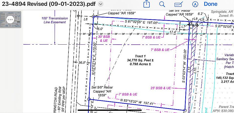 .78 acre lot for sale in Tontitown. City water, city sewer & electric on property.