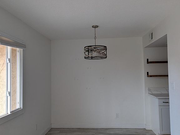 This unit has been recently updated with new stainless steel appliances, cabinets, counter tops, flooring, window covers, ceiling fans. Bath with double shower glass doors. Located in the vicinity of MCC and other technical schools. Short distance from several free-ways, restaurants and shops.