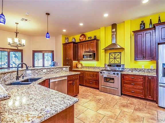 Gorgeous custom pool home on 1.35 acres with a 3 car boat deep garage with 5 spots and private well conveniently located just off Stockton Hill Rd! This property offers 2,633 sq ft of living space, Full RV hookups on an 800 sq ft concrete pad and stunning views of the surrounding mountains! The backyard is truly an Oasis that features a fiberglass pool that was installed in 2015, 600 sq ft of Pergola, back yard playground, fire pit and a Built in BBQ! Other important features and upgrades include: *Fully landscaped with and over 1,000 sq ft of AstroTurf *Pool is fully fenced, heated and has water features/ LED lighting *800 sq ft back patio *Custom Knotty Alder wood doors *Wood burning fireplace *Custom triple Low-E picture windows with solar screens and black out shades on all *Tile flooring throughout *Granite counter tops throughout *Open floor plan *Breakfast bar *Stainless steel appliances *Rubbed bronze fixtures *Master suite with patio access, walk-in closet, office/ den, granite master shower and jetted tub *Large guest bedrooms with Jack and Jill bathroom *Indoor laundry with ample cabinet space and wash sink *1,400 sq ft garage *30" eaves to reduce sun exposure *Underground water tank is equipped with jet pumps to maintain 70 psi and 30 gpm.