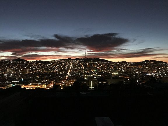 Top floor with pano views of the city. This is a two bedroom apartment with wood floors and newly remodeled kitchen and bathroom. There is a fireplace and two outdoor spaces both with views. The unit gets incredible light and is newly painted. Plenty of street parking.