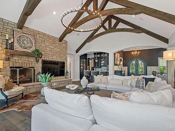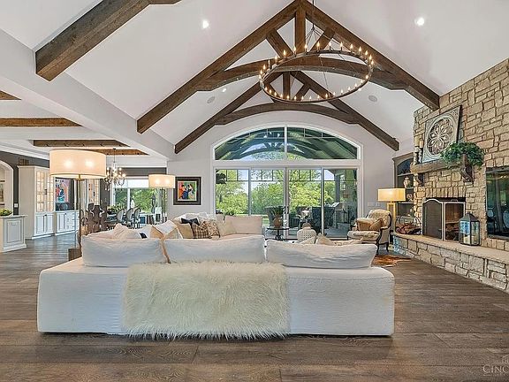 Enjoy a peaceful oasis with 5 park-like acres and private lake in the heart of Indian Hill. 4 BR, 7 BA masterpiece ranch style home with top of the line, modern finishes throughout and over 8,500 SF of living space. 12 ft ceilings throughout, gym, wine cellar, and home theater. Open format great room, beautiful outdoor living area complete with built in grill, appliances and fireplace, gorgeous pool, hot tub - all perfect for entertaining and everyday living.