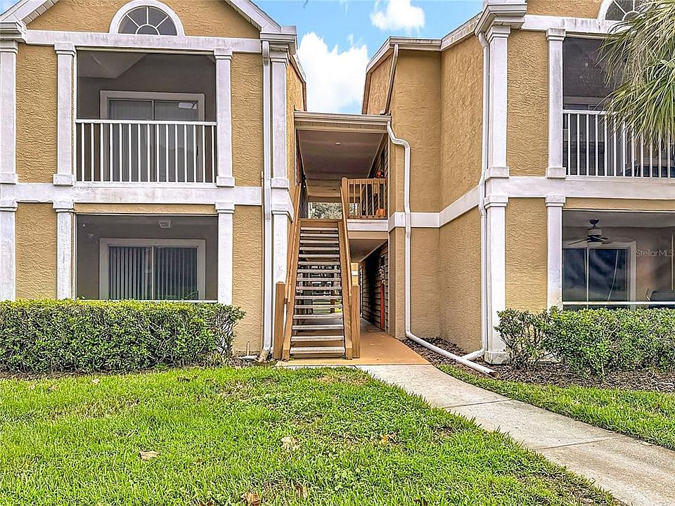 Stepping into this beautifully maintained first-floor condo located in The Highlands, you'll be immediately drawn to the spacious open floor plan and the wood-look luxury vinyl plank adding warmth throughout the entire home! Your kitchen includes stainless steel appliances, updated glass backsplash, and a convenient breakfast bar that connects to the living room. The oversized living room leads out to a screened patio with a courtyard view, as well as additional outdoor storage. The dining room is large enough for a formal dining table, perfect for dinner parties with family and friends. The primary suite offers a walk-in closet and is directly across from your beautifully renovated bath with dual vanities, granite countertops, jetted spa tub, linen storage, and tiled walk-in shower. The second bedroom is generous in size and can also serve as a home office. Additional features include an indoor laundry with shelving, water softener, roof (2017), and water heater (2017). Located in the sought-after community of Hunter's Green, you'll enjoy the benefits and security of the 24/7 manned gates, exterior building maintenance, landscaping, pool access, clubhouse, fitness center, playgrounds, jogging trails, tennis courts, and optional golf membership. Conveniently located in New Tampa just minutes from I-75, USF, Advent Hospital, James A. Haley Veterans Hospital, Moffit, shopping, restaurants, and places of worship.
