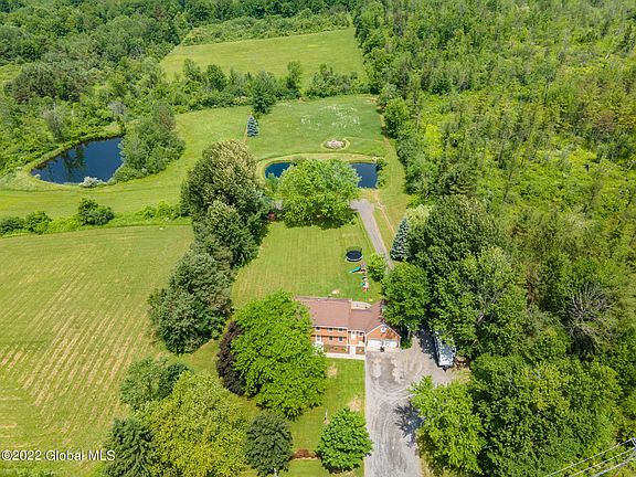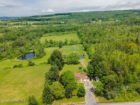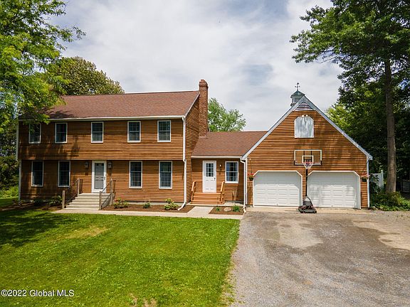 **All best and final written offers due on 6/24 at 9pm ** Situated on 3 acres in the heart of Duanesburg is this recently renovated 3BR, 2.5 BA Colonial. The bright and open floor plan features a brand new modern kitchen, large island, pantry & SS appliances. The kitchen opens up to a FR w/ wood burning fireplace, DR and LR w/ wood stove and wooden beams. Take the door from the kitchen to the deck overlooking the expansive private yard w/ pond & gorgeous views of Schoharie Valley! The second floor boasts 2 BRs, full bath and a spacious primary BR w/ updated full bathroom. The basement includes a finished Rec Room/FR, Gym and storage/utility room. Plenty of storage w/ 2-car garage, barn & shed. Conveniently located to schools, stores and I-88.