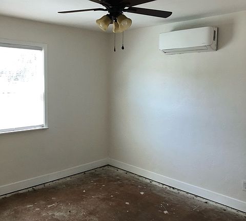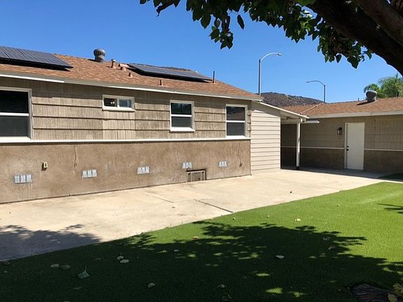 This is a spacious house with about 900 sqft of living space. Remodeled kitchen and bathroom with all stainless steel appliances. Wood burning fireplace in the living room. Hardwood floors throughout with light tan carpet in both bedrooms. This house does have solar panels on the roof. Fenced in back patio. Shared washer/dryer on-site.
