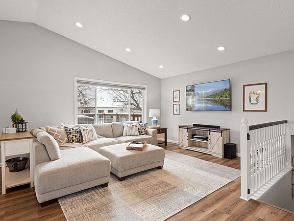 Light and airy perfectly describes this well cared for home with its open floor plan, vaulted ceilings & south-facing windows. Modern, neutral colors and updated, trendy finishes throughout make this a home you can move right into. The updated kitchen features granite countertops, white cabinets, new hardware, stainless steel appliances & luxury vinyl plank floors that carry through the main living areas. The four season porch gives access to the maintenance free deck and overlooks the large fenced-in backyard, which is complete with a new utility shed & raised garden beds. The lower level family room has a cozy gas fireplace along the beautiful shiplap wall, perfect for the colder months, and it conveniently walks out to the backyard for summertime parties & play. Great location, less than 5 miles to all the essentials & within walking distance to Woodridge Park.