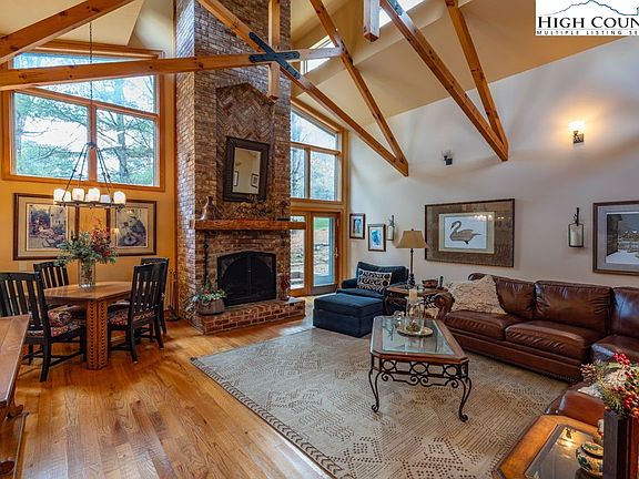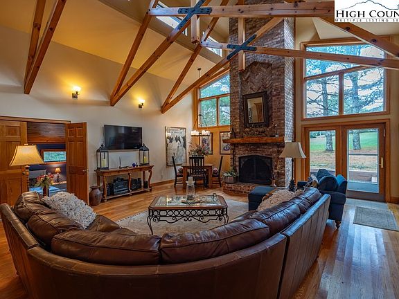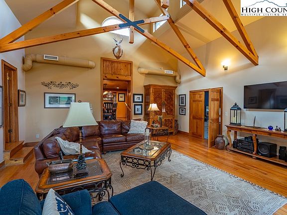 Enjoy the beautiful Valle Crucis community from this 4BR/3.5BA, 3300sq.ft. custom mountain home with efficiency apartment and 2-car garage located within close proximity to the Watauga River, Valle Crucis Park and original Mast Store. The main home features wood floors throughout living areas, central heat/ac, gourmet kitchen with granite counters and stainless appliances, walk-in pantry, mini-bar, 2 spacious bedrooms with en-suite baths, walk-in closets, and heated floors in each bath, 2 additional guest bedrooms with jack and jill bath, office space, foyer with sitting area and a gorgeous great room with vaulted ceilings, lots of natural light with a wall of windows, expansive exposed beams and floor to ceiling fireplace. Apartment offers a great space for guests or rental income potential with radiant floor heat, murphy style bed, full kitchen and full bath. Exterior features include a heated workshop/barn, multiple storage areas, multiple decks/patios for entertaining, outdoor fireplace and firepit. This property offers easy year-round access, one level living, high speed fiber optic services, and no rental restrictions. Adjoining 1.42 acres available for separate purchase. Located within close proximity to many high-country attractions and within 15 minutes to downtown Boone and AppState!
