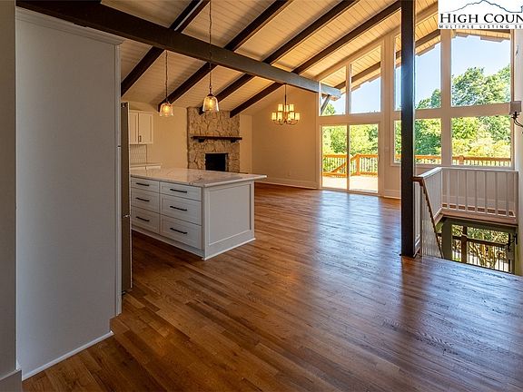 Searching for a completely updated, move-in ready mountain home - with 4 bedrooms, 4 bathrooms and a second living space? This is it! You'll love the open floorplan with brand new kitchen that opens onto the great room with vaulted, tongue-and-groove ceiling and wood-burning stone fireplace. The primary bedroom and bath are located on the main floor, along with a spacious laundry room and 2nd full bath. Guests will enjoy the downstairs den featuring a 2nd wood-burning stone fireplace, 3 bedrooms and 2 full baths. Expansive, new upper and lower decks are ideal for relaxing and entertaining. You'll also appreciate the detached carport and golf cart garage/workshop. This home is located in the private golf course community of High Meadows Golf & Country Club in Roaring Gap, NC. Stone Mountain State Park and the Blue Ridge Parkway are only five miles away, and the New River is less than a 25-minute drive. Come "live where you play" - and enjoy renowned wineries, potters and cool mountain air!