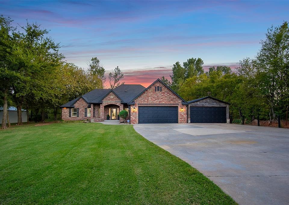 Welcome home to 949 CS 2932, Tuttle, OK! This stunning 4 bedroom, 2 bathroom home on just under an acre in the desirable Bridge Creek School District. With 1919 square feet of living space, an expanded pull-through garage, and beautiful outdoor living areas, this property perfectly blends comfort, functionality, and style. The home opens to a warm, inviting interior featuring high ceilings, abundant natural light, and a spacious open layout. The living room centers around a cozy fireplace, while the updated kitchen boasts granite counters, countertop seating, stainless steel appliances, and ample cabinetry—ideal for both everyday living and entertaining. The primary suite is a private retreat, offering a spa-like bathroom with dual vanities, soaking tub, separate tiled shower, and generous walk-in closet. Three additional bedrooms provide flexibility for family, guests, or a home office. Outdoors, you’ll find a large deck, mature trees, and a custom stone firepit area, perfect for gathering under the Oklahoma sunsets. A below-ground outdoor storm shelter adds peace of mind, and the expansive yard offers space for play, gardening, or future projects. There is a 10x20 shed at the back of the property for even MORE storage. Located in a quiet neighborhood, yet minutes from schools and conveniences, this home offers the best of both country living and modern comfort. **Additional features include future wiring for under cabinets lighting in the kitchen, storm shelter, 240 amp plug available and 50-amp service in the insulated garage add-on.**