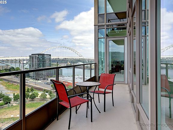 Penthouse Alternative / 13th Floor View Condo - Rare SW Corner Condo with a Wrap Around Balcony Overlooking Fields Park - Mount Hood, Mount St Helens, River & City Views - 2 Bedrooms, 2 Baths, 1523SF. Large apx 253' Balcony with access from Primary Bedroom and Dining Room. Large Inviting Entry/Art Corridor - Spacious View Living Room - View Dining Room - Gourmet View Kitchen features Cook Island with 4 Burner Gas Range, Bosch Appliances, New LG Microwave, Silestone Quartz Counters - Elegant Primary View Suite with New Walk-in Shower Tile/Enclosure down to and including pan, hardware & glass (2022), Custom Closet Built-ins - Large Second Bedroom - Separate Utility Room. Views from most rooms - Floor to Ceiling Windows with 95% Opaque Shades - Hardwoods, High Ceilings, Built-ins - Community Room & Fitness Center - Deeded Parking and Full Height Storage - Refrigerator, Washer & Dryer included. Next to dog friendly 3 Acre Fields Park. Portland Streetcar, Markets, Restaurants, Galleries, Theater , 2 Parks (The Fields & Tanner Springs) and Ovation Coffee & Tea. A Special Property in a Great Pearl District location. Amazing Views!!
