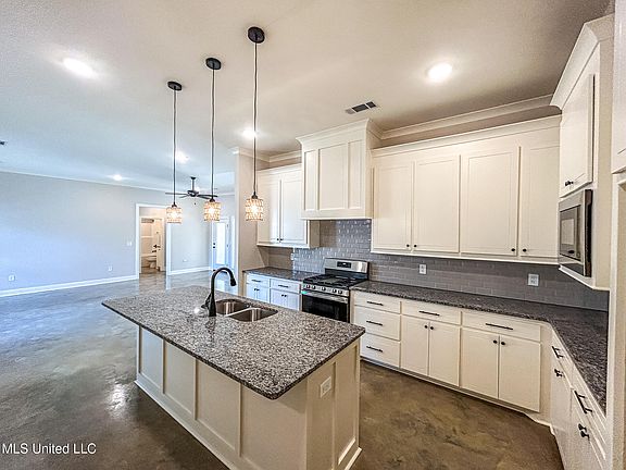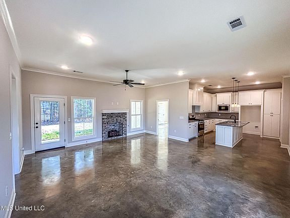 Discover refined comfort in this 3-bed, 2-bath home nestled in a covenant-protected neighborhood just minutes from shopping, entertainment, and interstate access. An open-concept living area showcases stained concrete floors, crown molding, and a showpiece kitchen with an oversized island, granite counters throughout, and a walk-in pantry for effortless storage. Unwind on the inviting front and back porches accented by rich pine ceilings. The primary suite impresses with a spacious walk-in closet and a spa-inspired bath offering dual vanities and elegant finishes. A seamless blend of style, functionality, and location—ready for you to call home.