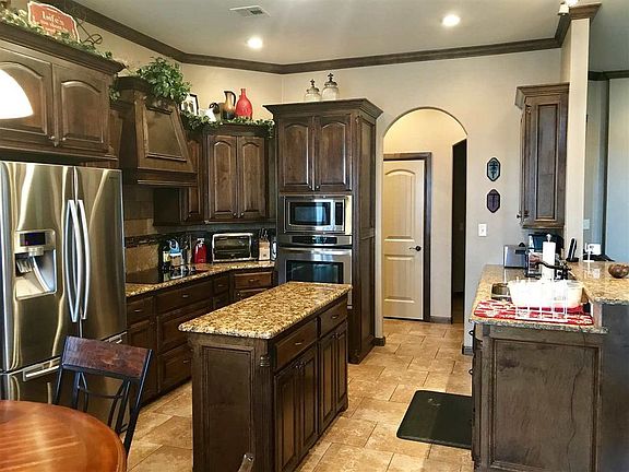 This beautiful home Is located in Country Aire Estates. It has views that overlook the mountains and the windmill farm off the front porch. It is only 15 minutes from Lawton, Oklahoma and 10 minutes to Ft. Sill. It sits on almost 1.5 acres with a stained privacy fence that consist of rod iron that has beautiful views of the pond that is stocked with fish and perfect for family outings or paddle boating. The backyard also comes with a playground for the kids and trampoline. Part of the pond is actually part of the acreage included in the listing and has a fully covered patio for those relaxing evenings outside. The rooms are perfect for a family of five or you can use the upstairs as a theatre room. It has everything a family needs and wants. It has a gas fireplace and water heater system. It comes with a generator aand the house is wired for the harshest of winters. It features a big master suite with sliding barn door and juccuzii tub for the master bathroom. Jack and Jill bathroom for the two guest rooms, and two half bathrooms. It also has a private office with French doors. This is perfect for the growing family or if your looking for that perfect neighborhood for your family. Please me via or me. you can me anytime.