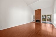 Full-height brick fireplaceSizable two car garageWhite soft-close shaker-style cabinetryPrivately gated front courtyardOversized windowsVersatile adjoining flex spaceDownstairs primary suite