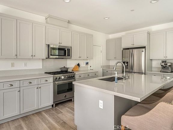 Welcome Home to Elara – A Bright and Beautiful Move-In Ready Gem! Step into comfort and style in this stunning 4-bedroom home with a bonus loft, located in the highly sought-after Elara community. Thoughtfully designed with both functionality and elegance, this residence features a convenient downstairs bedroom and is filled with natural light throughout. The spacious open-concept living area flows seamlessly into the gourmet kitchen, complete with a large island with seating—ideal for entertaining. You'll love the timeless shaker cabinets, quartz countertops, stainless steel appliances, and brand-new dishwasher and microwave. Upstairs, the expansive primary suite serves as a peaceful retreat with a generous walk-in shower, dual vanities, shaker cabinetry, and quartz counters. Enjoy primary spacious walk-in closets with dual-door access. The versatile loft adds flexibility for a home office, playroom, or second living space. The backyard is a private, low-maintenance oasis featuring lush landscaping, paver patio, relaxing water fountain, artificial turf, and an included outdoor dining set—perfect for hosting or unwinding in style. Additional highlights include central air conditioning, a tankless water heater, and a dedicated laundry room with washer, dryer, and built-in added storage. Enjoy community perks like an exclusive neighborhood park with a small playground—great for kids or pets. Ideally located near South Coast Plaza, John Wayne Airport, The Camp, The Lab, and more, this home offers a rare blend of comfort, location, and lifestyle. Don’t miss your chance to own this exceptional Elara home!