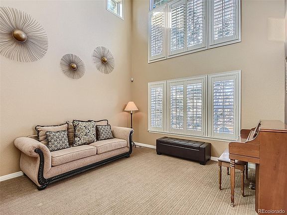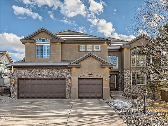 Stunning home in Heritage Hills offers a private corner lot w/large backyard and mature landscaping. Soaring vaulted ceilings, expansive windows w/plantation shutters and hardwood floors greet you as you enter this executive home. Updates throughout this floorplan are designed to provide plenty of space for family and guests on every level. In the kitchen there is plenty of room to entertain w/abundance of high quality 42” mahogany cabs, under cabinet lighting, high breakfast bar w/bar stools, granite counter tops, pantry, hardwood floors and newer SS appliances w/gas cook top. Only steps to the outdoor covered patio/kitchen w/radiant heat, ceiling fan, powered solar privacy shades, granite counter, wine cooler, grill and surround sound w/cable to watch your favorite sports events. Decorative wrought iron balusters lead you to the upper loft overlooking the grand family room w/vaulted ceiling and a massive fireplace. Main floor study is equipped with built-in office furniture. You will be delighted with a spacious primary suite w/vaulted ceiling, french doors, his/her walk-in closet, 5-piece ensuite bath. Ideal for Phase II future expansion is the 28'X17' rendering of the upper trex deck awaiting your finishing touch for views of mountain sunsets. Two of the bedrooms share a jack-n-jill bath, guest bedroom ensuite bath. Guests or other family members will love this finished basement. You will be thrilled with the built-in’s, pool table, bar stools included, wet bar w/wine cooler, wine rack, exercise room, 2nd family room w/space for media and bedroom w/ensuite bath. Plenty of storage shelves to organize. Your 3 car garage has plenty of cabinets and storage shelves with floor coating. Park Meadows mall, Skyridge Hospital, Lincoln Light Rail, Lone Tree Art Ctr, Charles Schwab I-25 & E470, 30 min to DIA, 2 hrs to mountains for a day of snowboarding/skiing/mountain biking. Love the Colorado lifestyle!