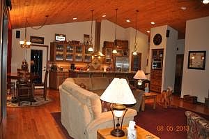 This home was built in 2007 and is custom from top to bottom. 3 bedroom, 2 baths, den/office, over-sized garage, granite throughout, custom stainless steel counter 9 Ft long with sinks toped with granite to make the 12 Ft bar. Hardwood floors, heated tile floors, propane fire place. Zonal heating-air conditioning. Vaulted ceilings and sunroom. Flat screen TV and surround sound included.