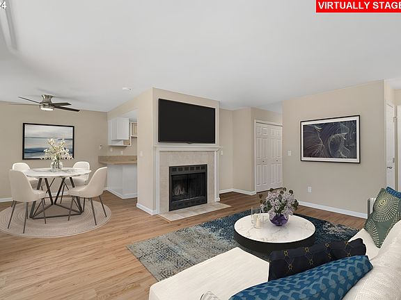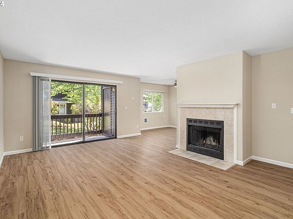 Discover this updated main level 2 bedroom, 2 bathroom condo that perfectly blends comfort and convenience with the bonus of two covered parking spaces. The primary bedroom is en-suite with a walk-in closet. Step inside this move-in ready home featuring LVP wood plank flooring, a wood-burning fireplace, and a quiet interior location, perfect for relaxing evenings. The living room opens to a deck with storage, ideal for outdoor enjoyment on a green belt. This community has been recently updated with new roofs featuring 50-year composite shingles, new gutters and downspouts (completed in September 2018), freshly painted buildings and carports (2022), and new vinyl windows (2014). The HOA offers additional amenities including a pool, spa, and fitness room. The HOA covers water, sewer, and garbage services. With a bike score of 70, this location is very bike-friendly. Close to the Murray Scholls Town Center, and Washington Square. Zero-down financing is available for qualified buyers with a lender-paid gift.