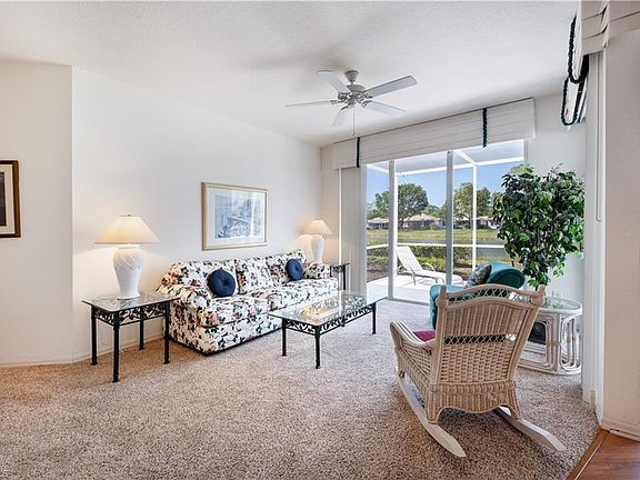 Your condo alternative located in the heart of Bonita! This charming 2-bed, 2-bath villa-style home offers 1,309 sq ft of comfortable living space. The open floor plan features 10-ft ceilings and a well-planned split bedroom layout. The owner's suite is complete with an en-suite bath with a soaking tub, dual sinks, walk-in closet, and water views from outside access sliding doors. The guest suite offers a spacious walk-in closet and direct access to the guest bath which has a walk-in shower. In the kitchen, you'll find tile flooring, a Bosch dishwasher, newer appliances, ample cabinet and counter space, and a convenient storage pantry. Enjoy meals in the open dining area or at the kitchen breakfast bar, both offering scenic water views. Relax in the attached cozy den or more formal living room. Outside, you'll appreciate the two-car garage, a screened lanai with water views, and extra storage space in an exterior closet, perfect for golf clubs or your beach chairs. The community amenities are steps away and include a clubhouse, pool, spa, fitness room, tennis court, bocce, and more. All this is just minutes from the exciting revitalization of downtown Bonita Springs, Gulf beaches, golf courses, RSW airport, shopping, dining, and entertainment. This is a perfect investment, starter, or downsizing home. Make the Villages of Bonita your new home today!