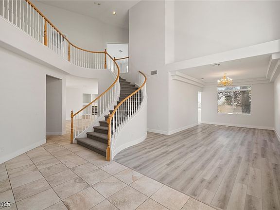 This exceptional home where style meets luxury locater in the guard gated community of the Foothills. This home offers a comfortable layout with quality finishes. Vaulted ceilings and a sweeping staircase greet you upon entry, while luxury vinyl plank flooring flows throughout the main living areas. The family room features a fireplace and connects seamlessly to the kitchen, perfect for everyday living and entertaining. Formal living and dining rooms offer additional versatility. The spacious primary suite includes a sitting area and a fireplace, adding warmth and comfort. The en suite bath features dual vanities, a garden tub, separate shower, and a walk-in closet. Additional bedrooms offer flexibility for family, guests, or office space. The private backyard is ideal for relaxing or entertaining, and the three-car garage provides plenty of storage. Minutes from I-215, parks, trails, schools, and shopping, this home offers a blend of comfort, space, and a desirable Summerlin location.