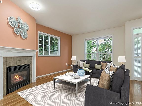 Charming end-unit townhome with the largest yard among 19 units. Prime location minutes from Washington Square, Metzger Park, and Highway 217. Enjoy two spacious, light-filled bedrooms and two full baths upstairs. Hardwoods, high ceilings, and fireplace. Kitchen includes new matching Samsung Bespoke White Glass Fridge/Dishwasher. HOA dues paid in full through end of 2024 - No HOA dues for new owner until 2025.